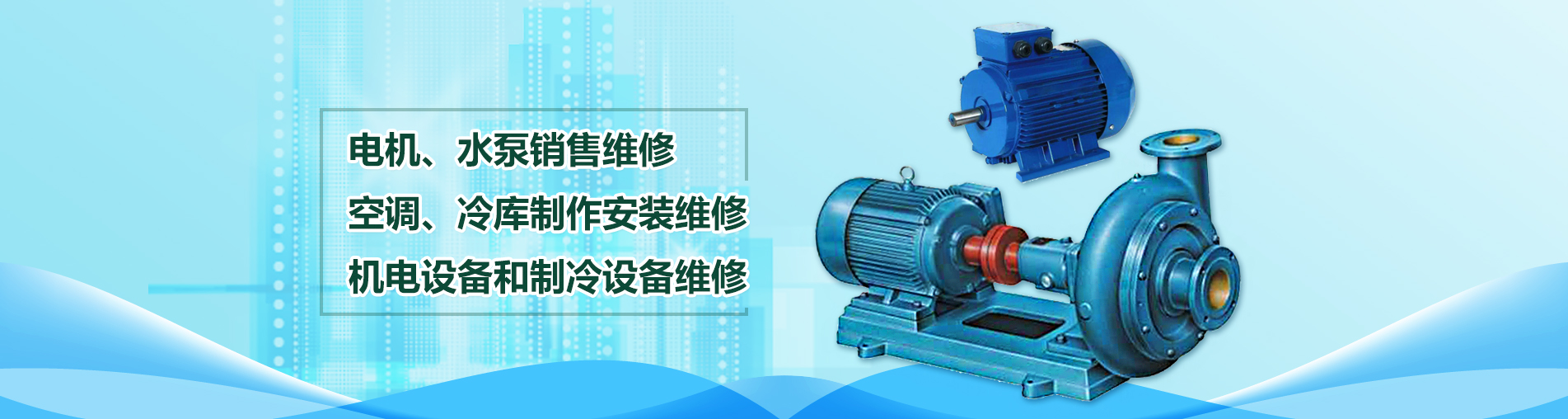 關(guān)鍵詞: 機電設(shè)備和制冷設(shè)備維修 空調(diào).冷庫制作安裝維修 電機.水泵銷售維修